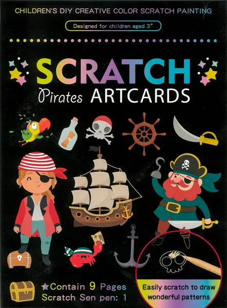 sada 9 různých škrabacích obrázků, rozměr obrázku 14 x 19 cm, škrabací pero