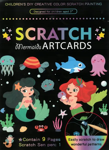 sada 9 různých škrabacích obrázků, rozměr obrázku 14 x 19 cm, škrabací pero