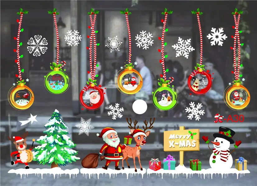 dekorace bez lepidla, drží díky svým elektrostatickým vlastnostem, je vhodná na okna, dveře nebo zrcadla, formát 35 x 50 cm, 2 archy s několika jednotlivými samolepkami, mix vzorů