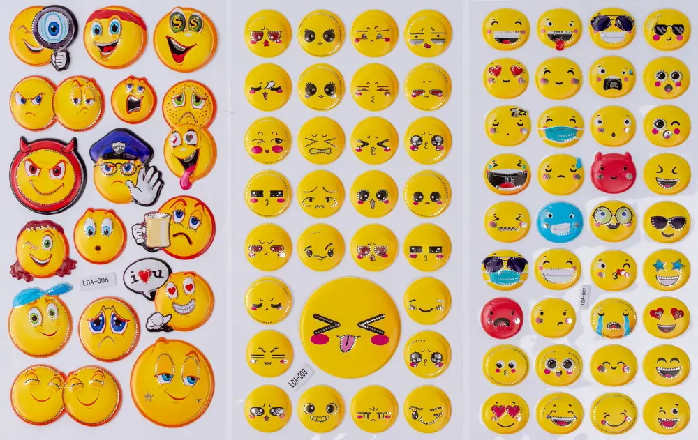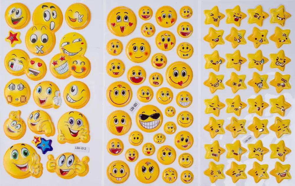 konvexní samolepky, velikost samolepky cca 1,8-4 cm, 1 arch 10 x 18 cm, 6 ks v balení