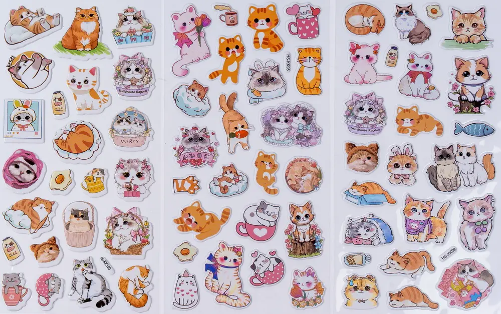 konvexní samolepky, velikost samolepky cca 1,4-4 cm, 1 arch 10 x 18 cm, 6 ks v balení