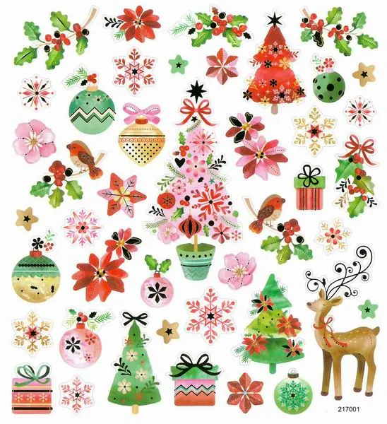43 ks papírových samolepek, velikost samolepky cca 2 cm, rozměr archu 15 x 17 cm