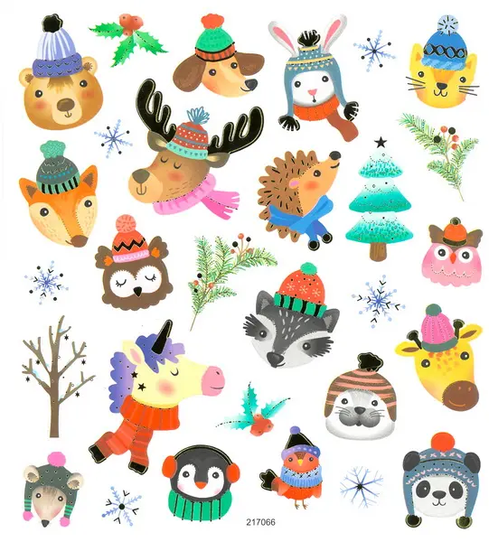 29 ks papírových samolepek, velikost samolepky cca 1,5-4 cm, rozměr archu 15 x 17 cm
