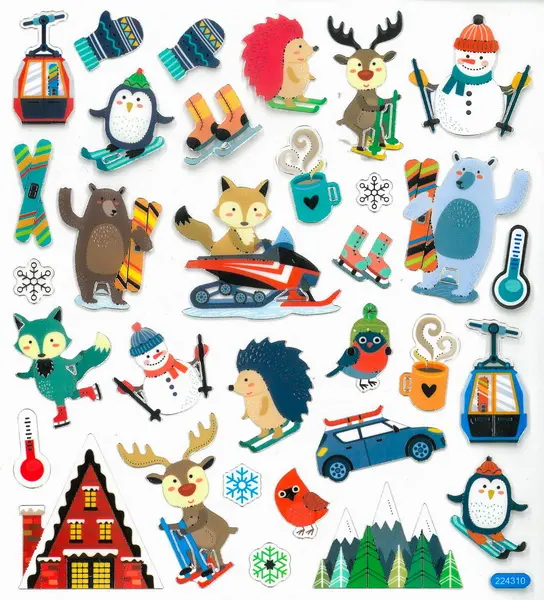 32 ks papírových samolepek, velikost samolepky cca 1,5-4 cm, rozměr archu 15 x 17 cm