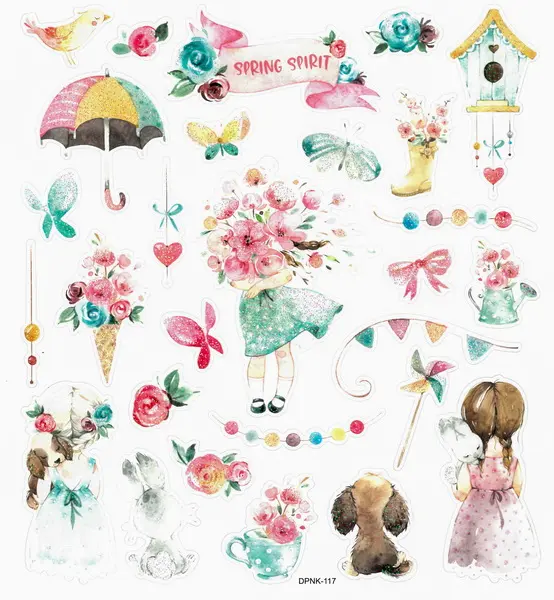 28 ks papírových samolepek, velikost samolepky cca 1,5-4 cm, rozměr archu 15 x 17 cm