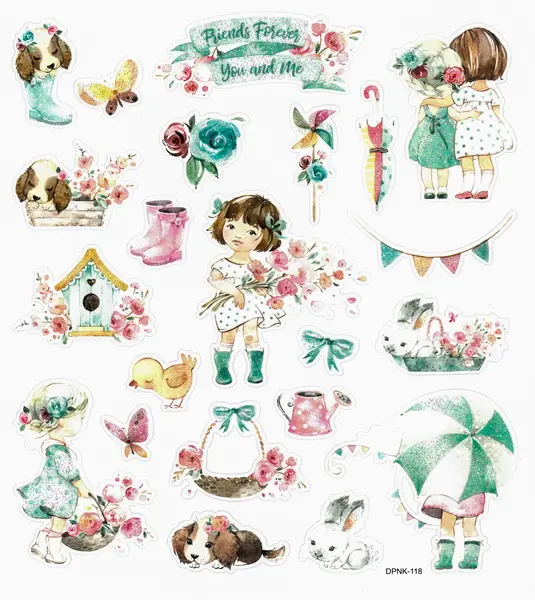 22 ks papírových samolepek, velikost samolepky cca 1,5-4 cm, rozměr archu 15 x 17 cm