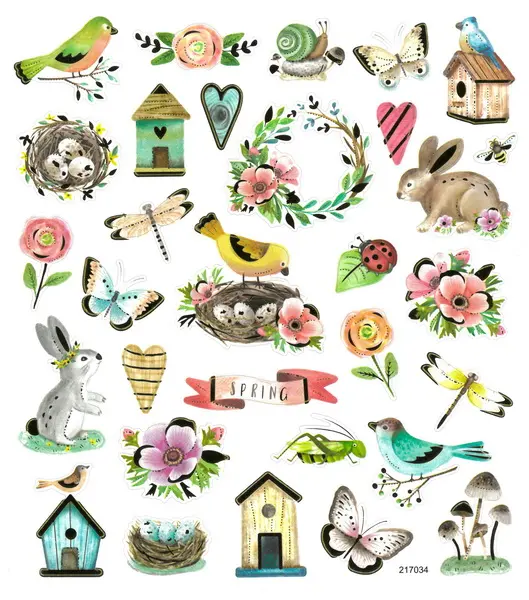 31 ks papírových samolepek, velikost samolepky cca 1,5-4 cm, rozměr archu 15 x 17 cm