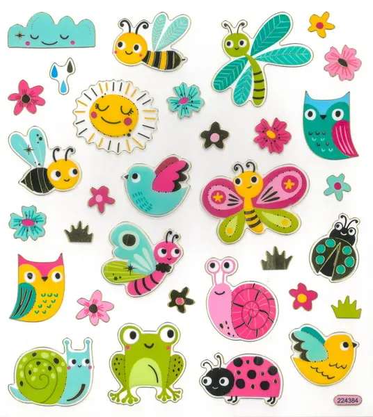 32 ks papírových samolepek, velikost samolepky cca 3 cm, rozměr archu 15 x 17 cm