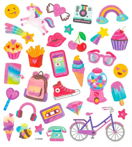 32 ks papírových samolepek, velikost samolepky cca 3 cm, rozměr archu 15 x 17 cm
