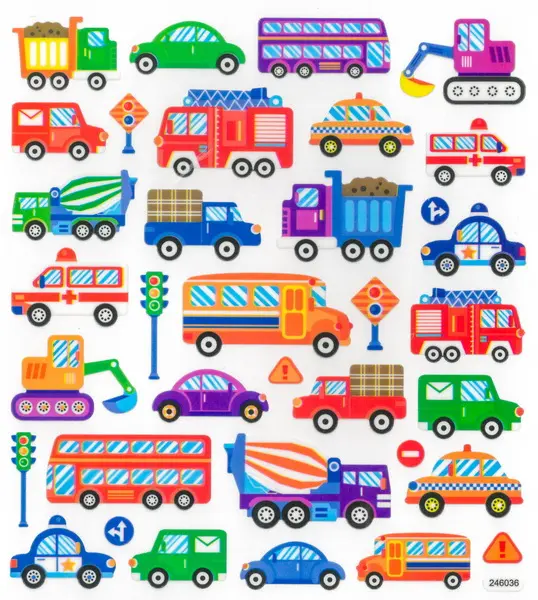 35 ks papírových samolepek, velikost samolepky cca 3 cm, rozměr archu 15 x 17 cm