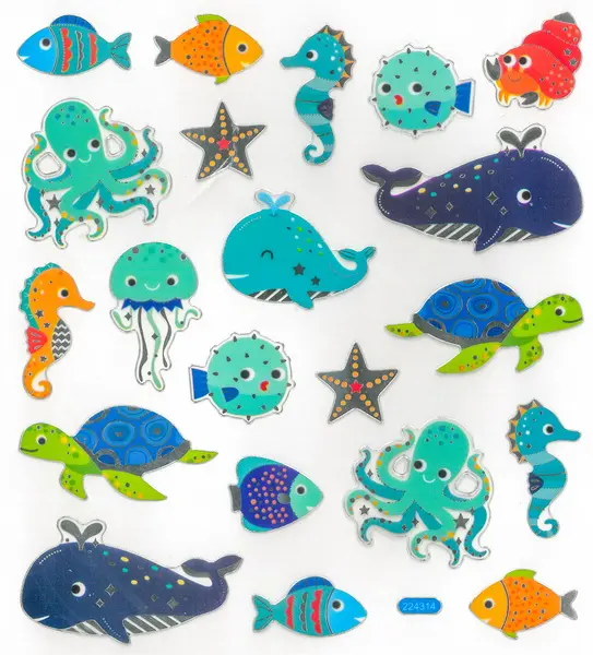 21 ks papírových samolepek, velikost samolepky cca 3 cm, rozměr archu 15 x 17 cm