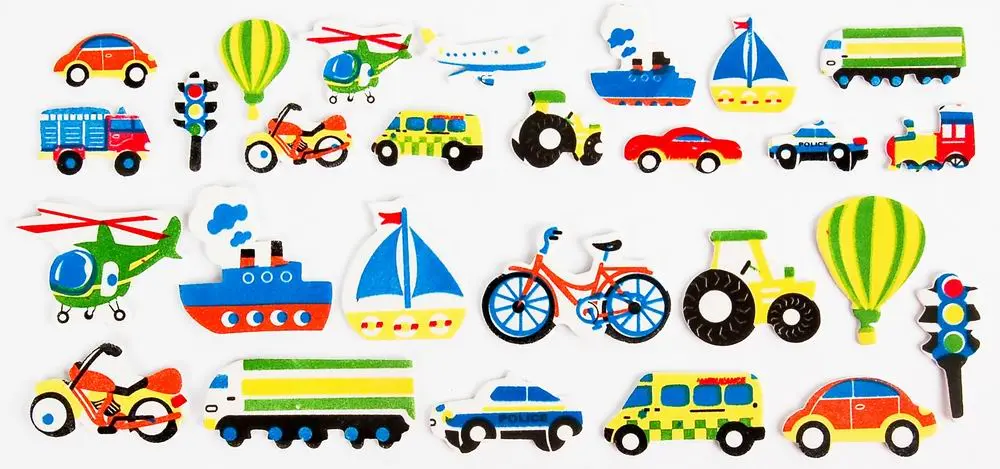 mix pěnových samolepek, velikost cca 3 – 5 cm, tloušťka 2 mm, 35 ks