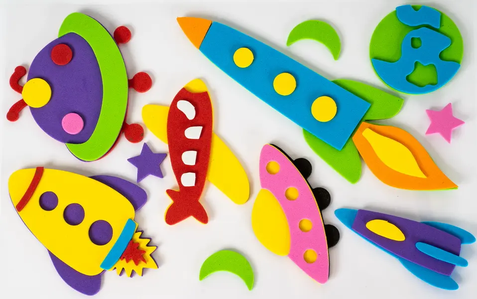 mix pěnových 3D samolepek, velikost cca 3 - 6 cm, tloušťka 2 mm, 7 ks
