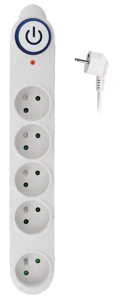 výstupní zásuvky opatřeny dětskými pojistkami • velký podsvícený vypínač • přívodní napájecí kabel délky 3 m • oddělená zásuvka pro velké napájecí adaptéry • ochrana proti bleskům a napěťovým rázům • obj. kód 149 618 jedna zásuvka s kontrolkou