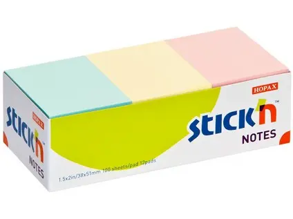 Blok samolepicí 38x51 mm pastel mix 3 barvy 12 bločků