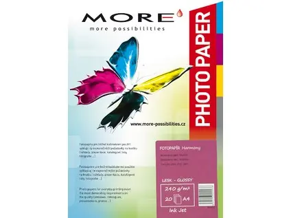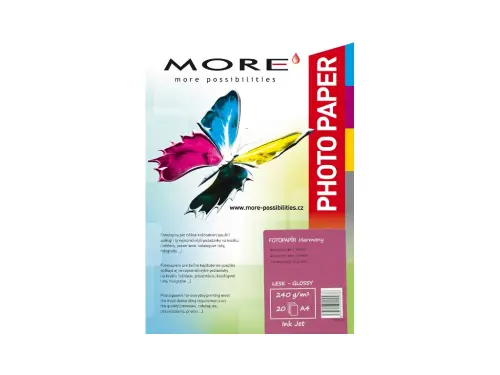 jednostranný fotopapír určený pro běžné každodenní použití • rychleschnoucí materiál vhodný pro většinu inkoustových tiskáren • vhodný pro tisk letáků, katalogových listů, přebalů, indexů a fotografií • formát: A4 • gramáž (g/m2): 240 • povrch: lesklý • počet listů: 20