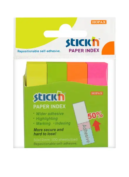 rozměr 50 x 12 mm • popisovatelné • přemístitelné • v papírovém zásobníku • 4 x 100 lístků v balení