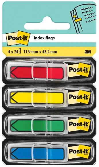 rozměr 11,9 x 43,1 mm • nepoškozují podklad • opakovaně použitelné • umožňují nalezení důležité informace • 4 x 24 ks záložek v balení