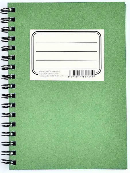 50 listů • papír 80 g/m² • linko-tečkovaný • boční spirálová vazba Twin Wire • bezdřevý bělený papír • kašírované pevné desky v zeleném retro designu