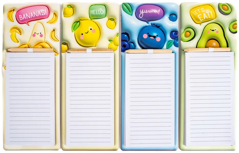 blok magnetický s tužkou, 40 listů, rozměr listů 9 x 17 cm, rozměr bloku 10,5 x 27 cm, mix designů