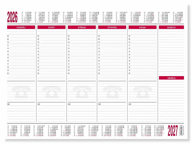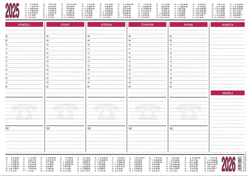 30 listů • papírová • lepená vazba na spodní straně • balená ve fólii • aktuální kalendárium