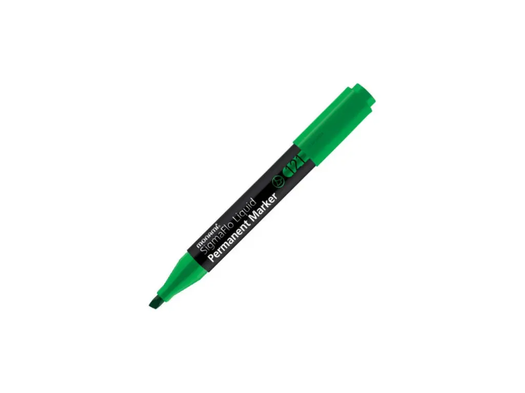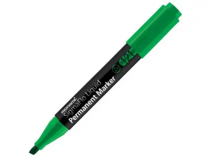 permanentní • klínový hrot • šíře stopy 1 - 5 mm • tekutý inkoust na bázi alkoholu • extra dlouhá stopa • nesmývatelný, voděodolný • rovnoměrná sytá stopa do poslední kapky inkoustu • např. na sklo, kov, dřevo, plast atd. • možné použití v horizontál