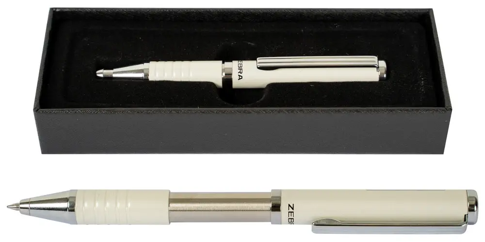 kovové kuličkové pero lakované, výsuvný mechanismus, vyměnitelná náplň F-0,7 Zebra, modrý inkoust, šíře stopy 0,7 mm, luxusní dárková krabička