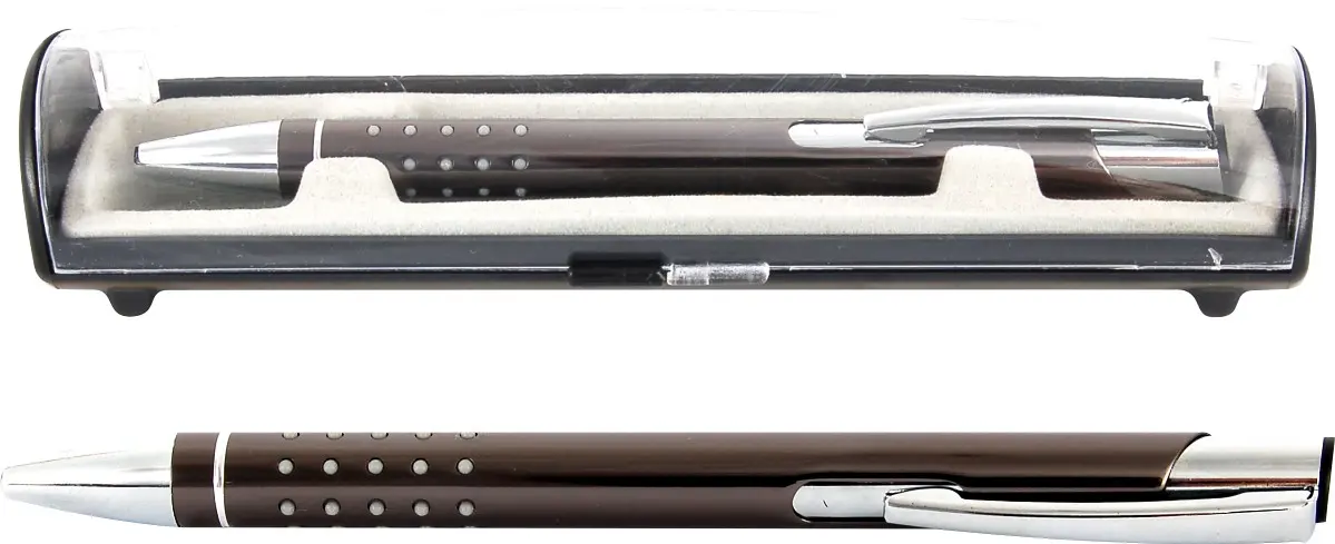 celokovové kuličkové pero, stiskací mechanismus, vyměnitelná náplň F-Parker, úchop s gumovými výstupky pro příjemné držení, modrý inkoust, šíře stopy 0,7 mm, dárková krabička