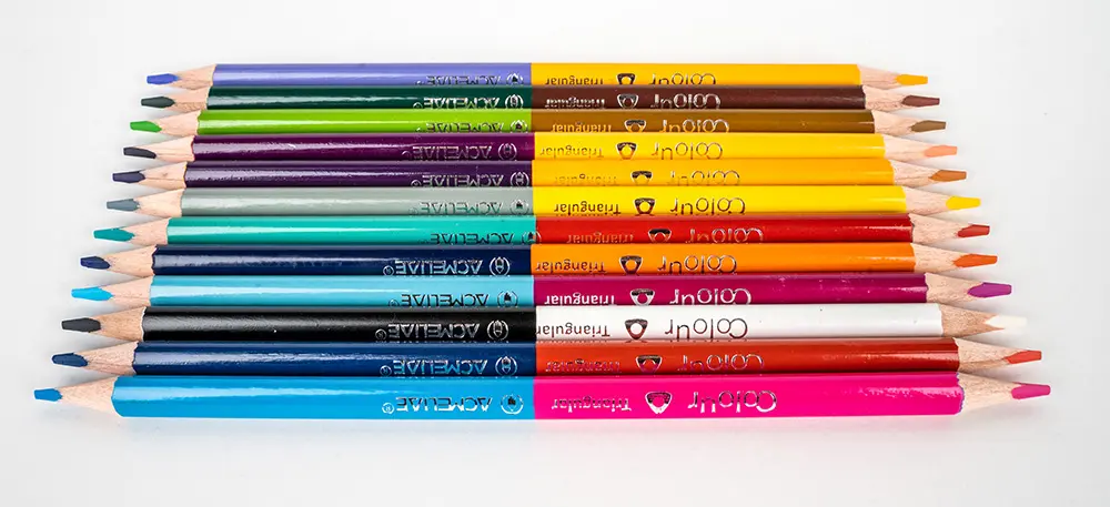 12 ks sada oboustranných pastelek – 24 barev, trojhranné - vhodné pro rozvoj drobné motoriky dětí, ergonomické - přirozené vedení pastelky, výjimečně měkká tuha, pro dokonalé krytí, lze ořezat v běžném ořezávátku