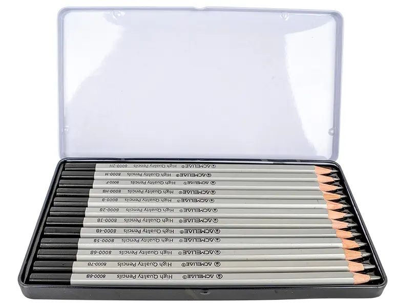 sada dvanácti šestihraných grafitových tužek, široké využití – pro technickou práci čí umělecké výtvarné činnosti, grafitové tuhy ve 12 stupních tvrdosti 2H – 8B