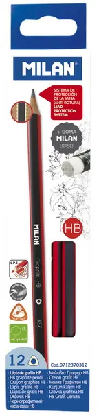 dřevěné • s pryží • trojhranné • nelámavá tuha • tvrdost HB • vhodné pro psaní i kreslení • 12 ks v balení