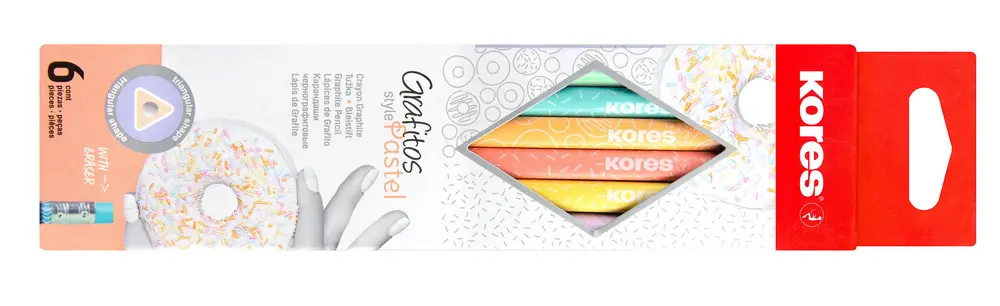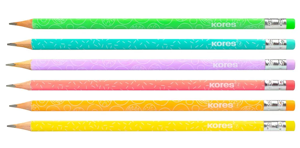 grafitová • silná a odolná tuha HB • jemné a pohodlné psaní - neškrábe • ergonomický trojhranný tvar • vysoce kvalitní dřevo pro snadné ořezávání • pryž v barvě těla tužky • 6 ks v balení