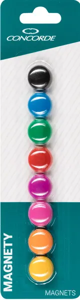 silné • zasazeny do profilového plastového těla • průměr magnetu 24 mm • výška 6,8 mm • nosnost 2,25 kg • snadná manipulace na tabuli • kulatý tvar • matný povrch • baleno na blistru po 6 ks