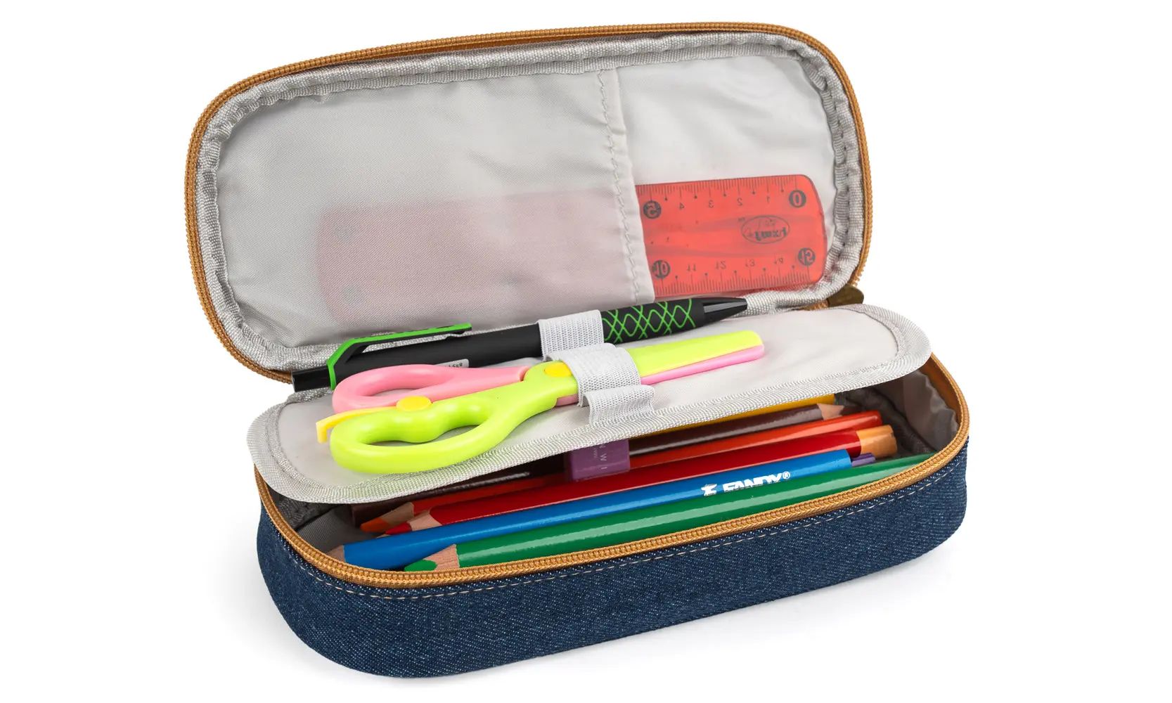 textilní etue se zipem, omyvatelný povrch, rozměr penálu 21,5 x 9 x 5,5 cm