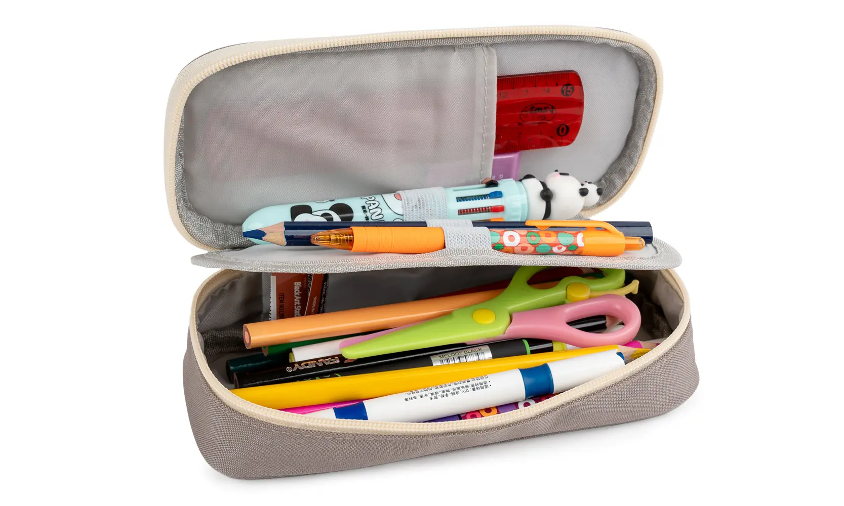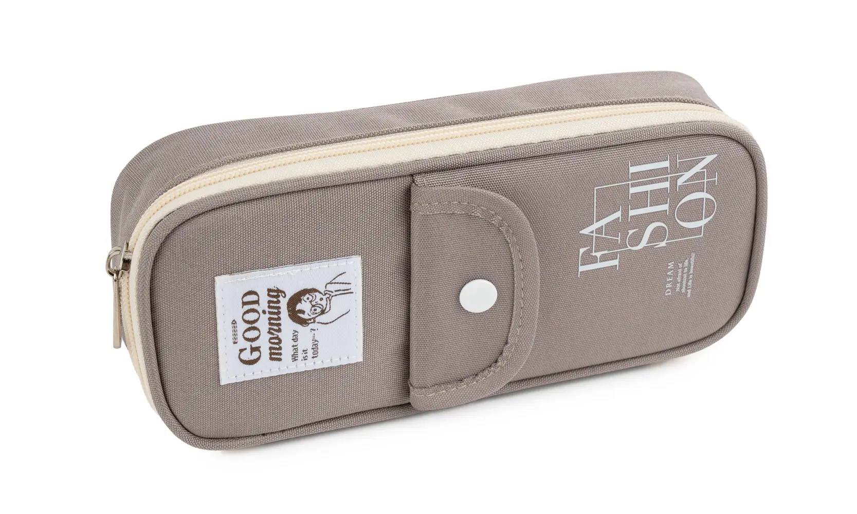 textilní etue se zipem a kapsičkou na cvok, omyvatelný povrch, rozměr penálu 21,5 x 9,5 x 5 cm