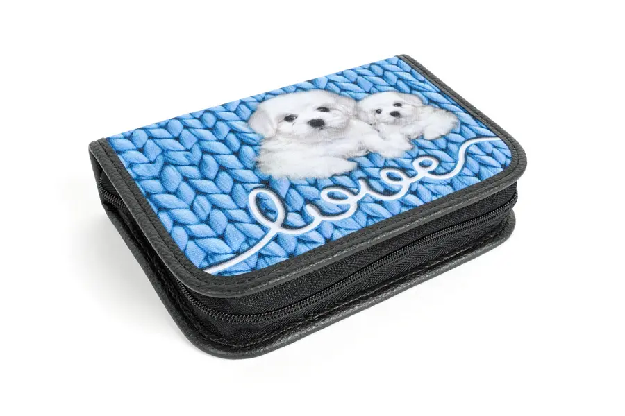 textilní jednopatrový penál se dvěma klopami, omyvatelný, rozměr penálu 20 x 5 x 14 cm (š x v x h), bez výbavy