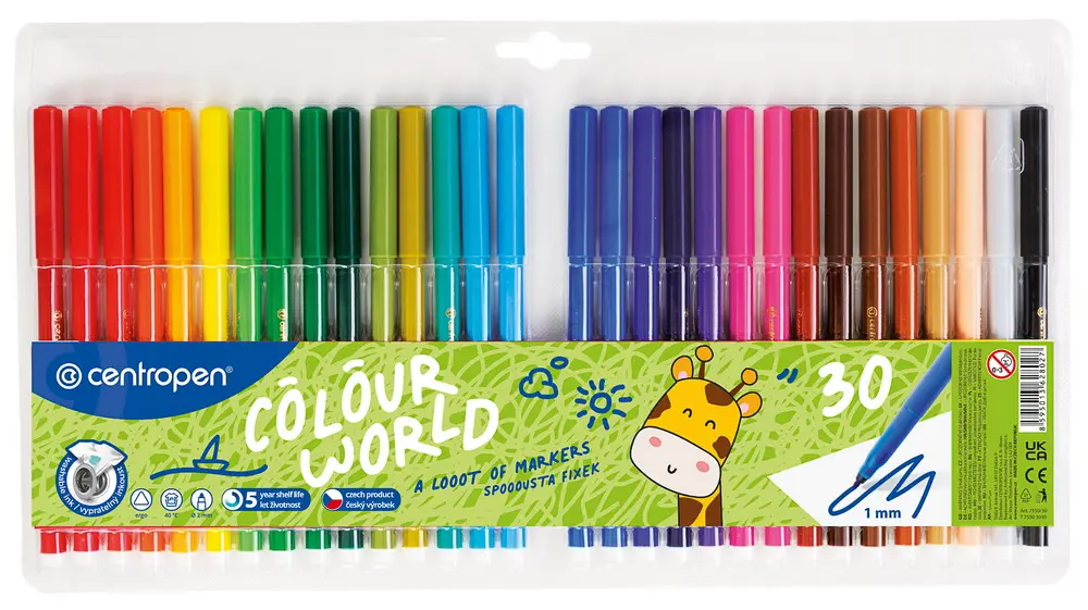 vypratelný inkoust • odolný proti vyschnutí • vláknový hrot • šíře stopy 1 mm • ergonomické držení • ventilační uzávěr • 50 ks v balení