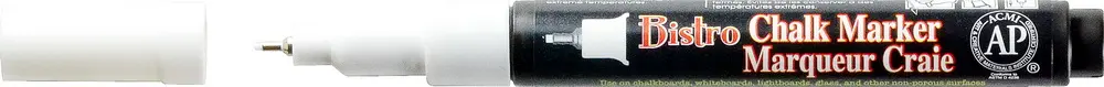 inkoust na vodní bázi • vysoké krytí • pigmentový • převážně na hladké nesavé povrchy • pro detailní psaní a kreslení na tabule, cenovky, malé menu tabulky, značky, okna, zrcadla a další • dočasný popis • vnitřní a venkovní použití • po zaschnutí otě