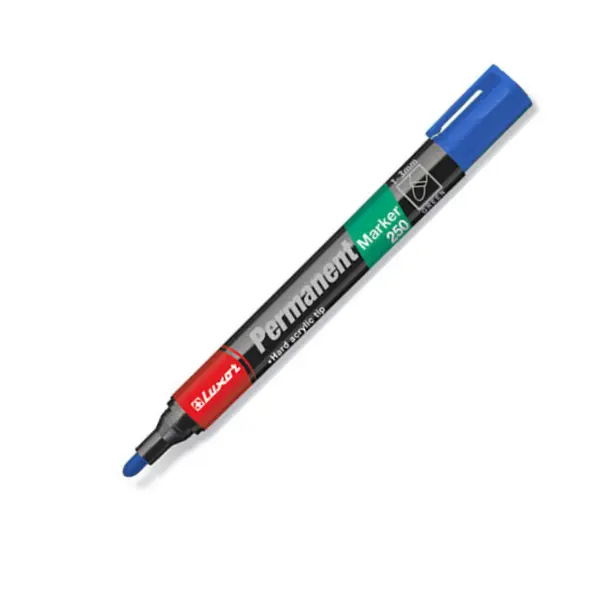 permanentní • vláknový kulatý hrot • šíře stopy 2 - 3 mm, dle tlaku • víčko s klipem • bez xylenu a toluenu • bez zápachu • jednotlivě zabaleno do průhledné fólie • pro použití v interiéru i exteriéru • např. na dřevo, kov, sklo, plast, keramiku, kůž