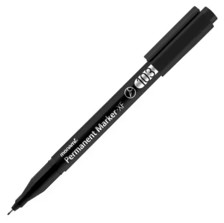 permanentní • extra tenký hrot v kovové trubičce • šíře stopy 0,5 mm • velmi tenká stopa pro přesné detailní značení • tekutý inkoust na bázi alkoholu • nesmývatelný, voděodolný • rovnoměrná sytá stopa do poslední kapky inkoustu • např. na sklo, kov,