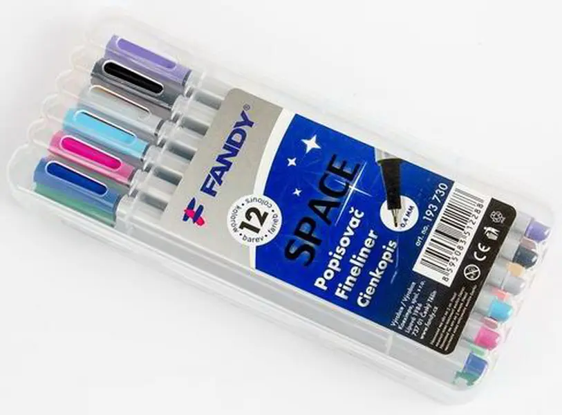 sada 12 barevných popisovačů, šíře stopy 0,4 mm, plastová krabička