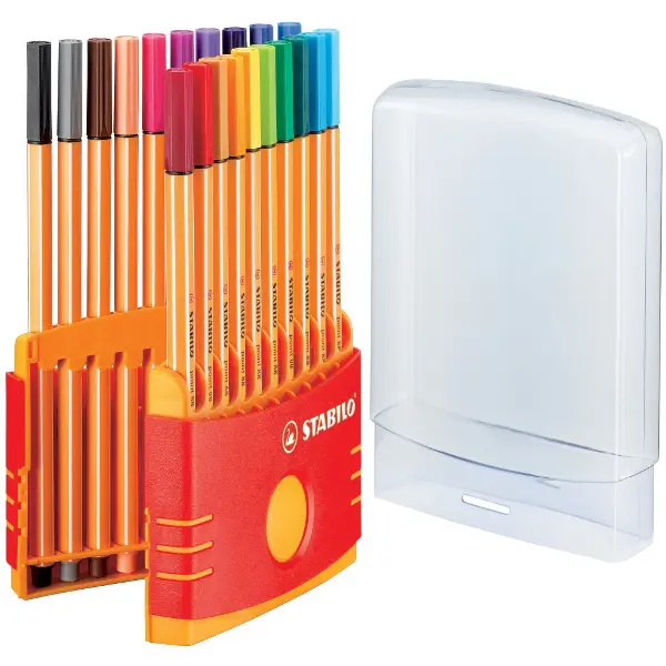 jemný liner • vhodný pro práci s pravítkem a šablonami, pro kreslení a skicování • vydrží dlouho bez víčka • odolný hrot v kovovém pouzdře • šíře stopy 0,4 mm • barva: sada 20 ks