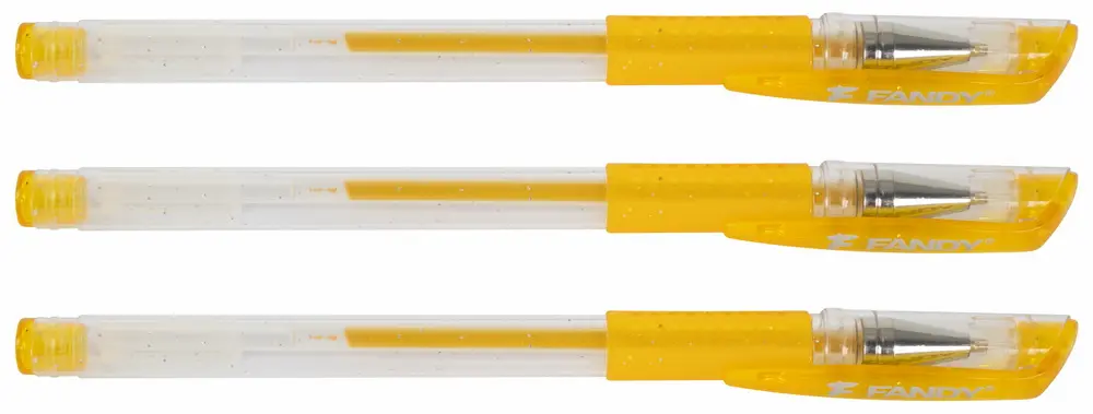 plastové gelové pero, gumová úchopová část pro pohodlné držení, vyměnitelná náplň, zlatý inkoust, šíře stopy 0,7 mm