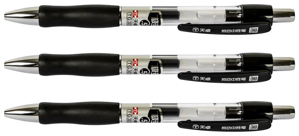 plastové gelové pero, stiskací mechanismus, gumová úchopová část pro pohodlné držení, vyměnitelná náplň F-Vigor, červený inkoust, šíře stopy 0,5 mm