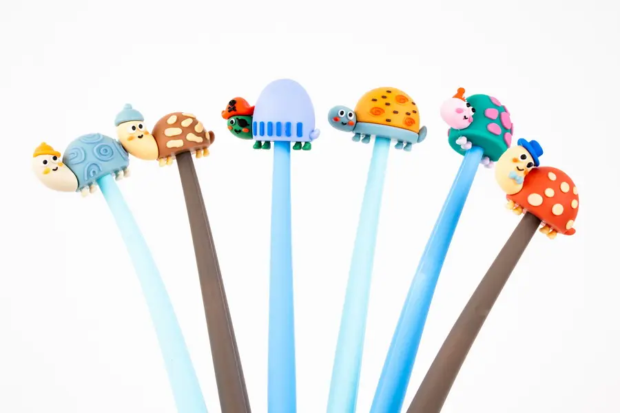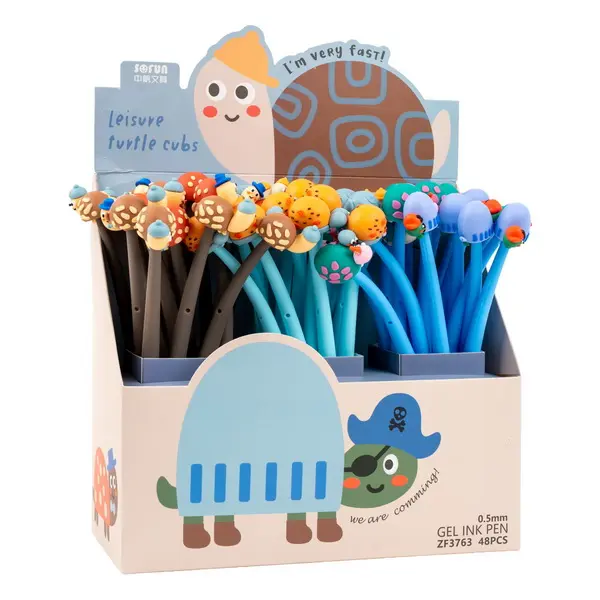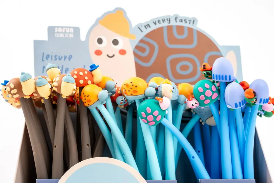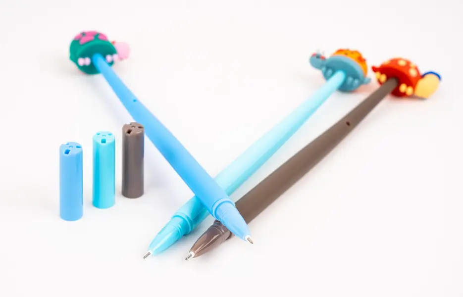 silikonové gelové pero s víčkem, vyměnitelná náplň F-Expert/Techjob Office, tělo z pružného materíálu, modrý inkoust, šíře stopy 0,5 mm, v balení mix vzorů a barev