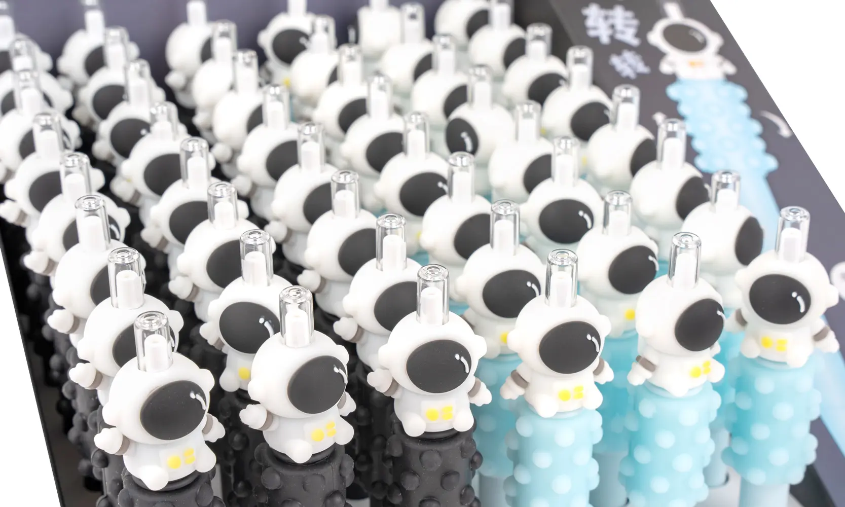 plastové gelové pero s masážním válečkem, stiskací mechanismus, vyměnitelná náplň F-Expert/Techjob Office, modrý inkoust, šíře stopy 0,5 mm, v balení mix vzorů a barev