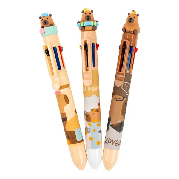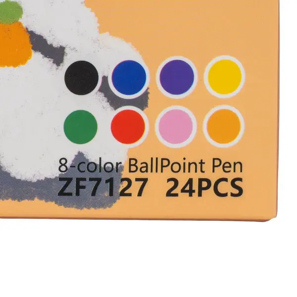 plastové kuličkové pero, stiskací mechanismus, osmikombinace červená-modrá-zelená-černá-oranžová-fialová-růžová-žlutá, šíře stopy 0,7 mm, mix vzorů
