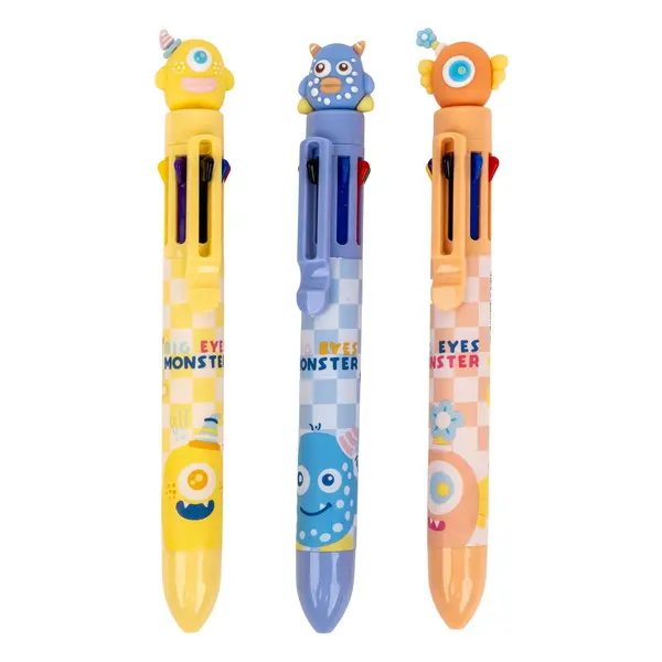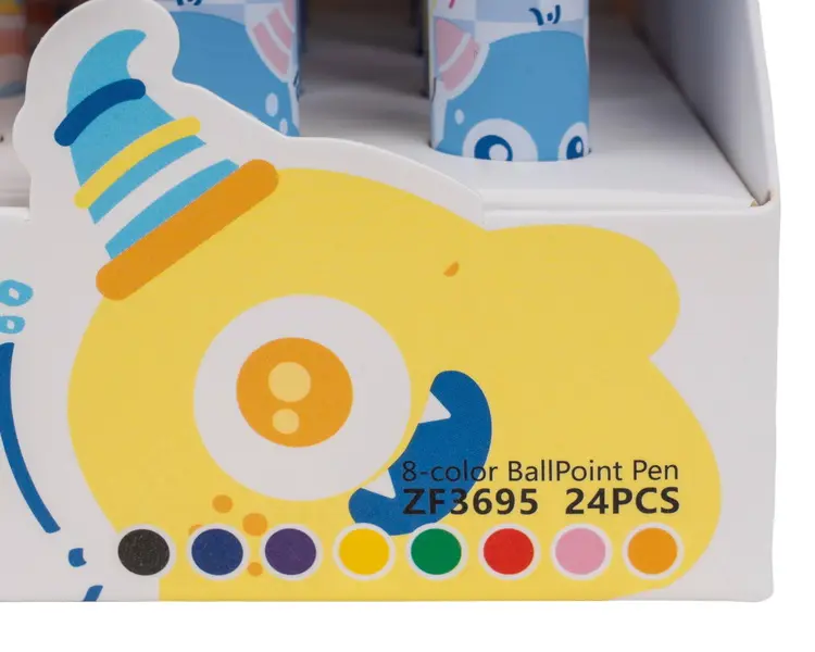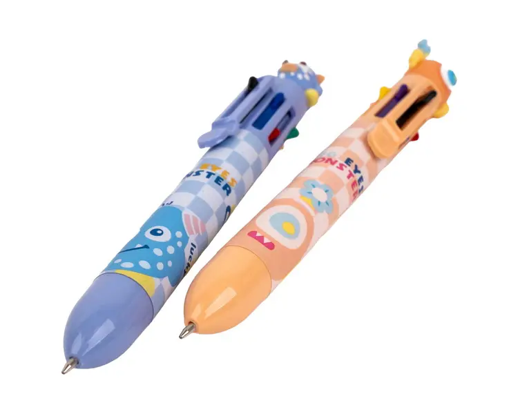 plastové kuličkové pero, stiskací mechanismus, osmikombinace červená-modrá-zelená-černá-oranžová-fialová-růžová-žlutá, šíře stopy 0,7 mm, mix vzorů