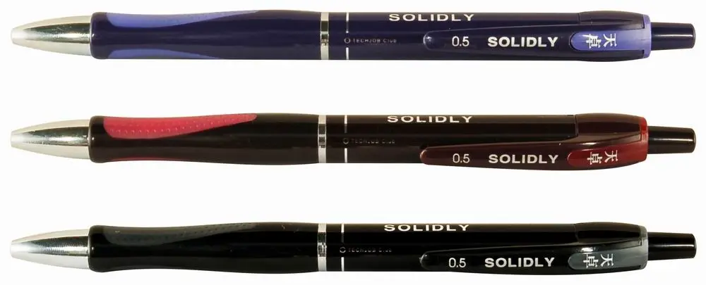 plastové kuličkové pero, stiskací mechanismus, gumová úchopová část pro pohodlné držení, vyměnitelná náplň F-411, modrý inkoust, šíře stopy 0,5 mm, mix barev
