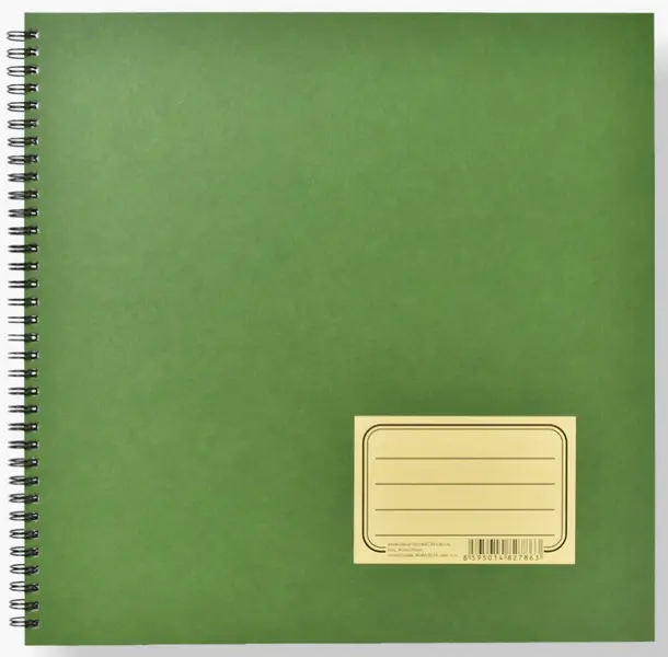 pevné zelené desky • 30 listů • gramáž papíru 190 g/m² • čtvercový formát • štítek na přední obálce pro nadepsání skicáku • boční kroužková vazba TWIN WIRE
